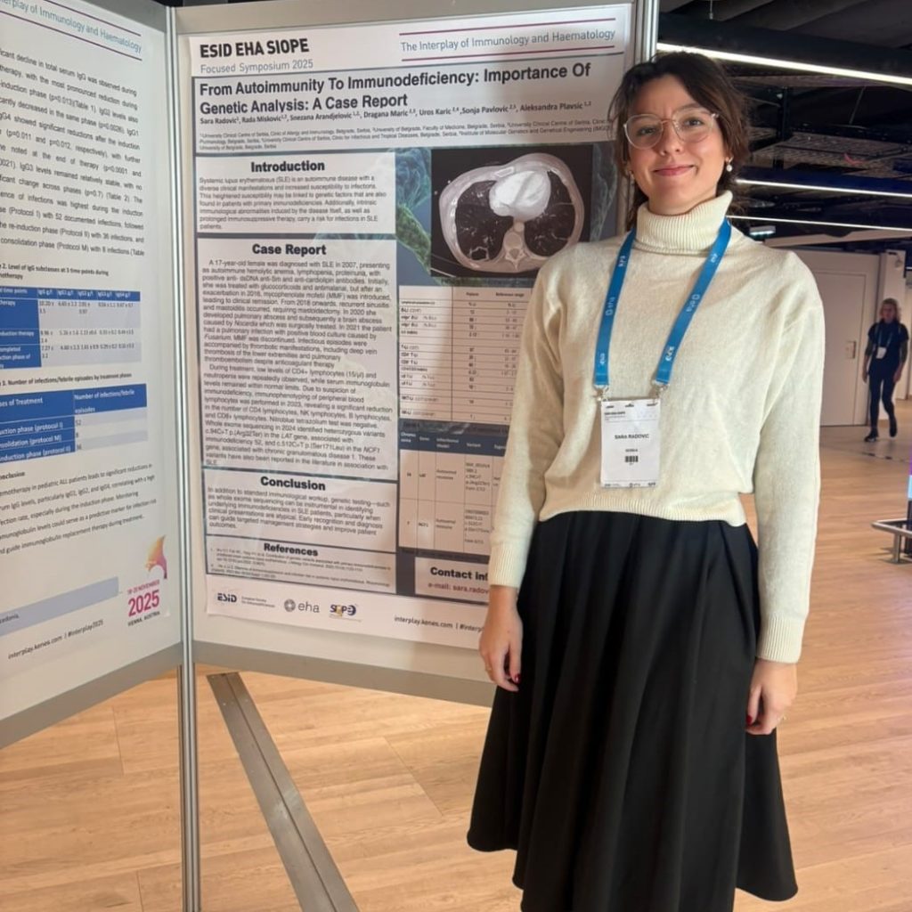 At this year’s ESID-EHA-SIOPE Symposium, held from November 18–20 in Vienna, Austria, Dr. Sara Radović from the Clinic of Allergology and Immunology, University Clinical Center of Serbia, presented a study titled: From Autoimmunity to Immunodeficiency: Importance of Genetic Analysis: A Case Report.